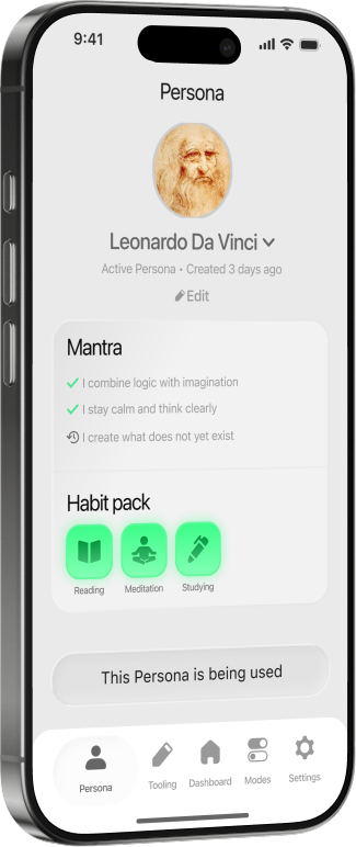No generic routines. Your Persona shapes every prompt, habit, challenge and tone — so the whole thing feels like it was built for you, not some average version of you.