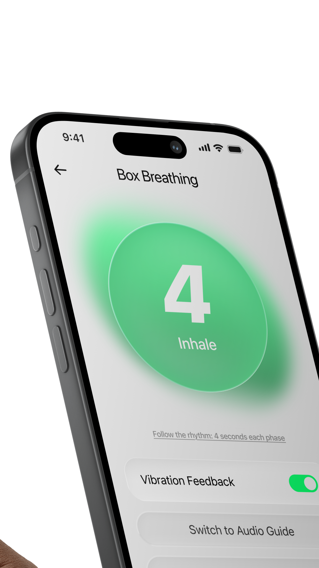 When it's hard, Crisis Kit is two taps away. Breathwork, sensory grounding, audio support, and real emergency resources — never paywalled, never paused by a streak.